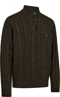 Sweter dzianinowy rozpinany pod szyją Deerhunter Harrington ½- cienki, mieszanka 50/50 wełna merino i bawełna