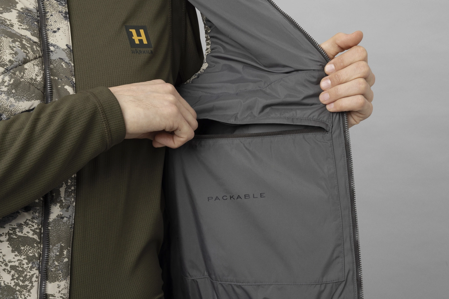 Kamizelka puchowa Härkila Camo HSP® to lekka i niezwykle ciepła kurtka myśliwska. Wyposażona w wiatroszczelną powłokę zewnętrzną w kamuflażu AXIS MSP®Mountain, zawiera opracowaną przez NASA izolację PrimaLoft® Aerogel, zapewniającą najwyższy poziom ciepła w łatwej do spakowania konstrukcji. Zaprojektowana z myślą o ubraniu "na cebulką", ma niski kołnierz, elastyczne otwory na ramiona i dopasowany dół. Zapinane na zamek kieszenie boczne, kieszeń wewnętrzna i puch gęsi Allied 900FP sprawiają, że jest to funkcjonalny i zapewniający ciepło, wybór na wymagające wyprawy myśliwskie.