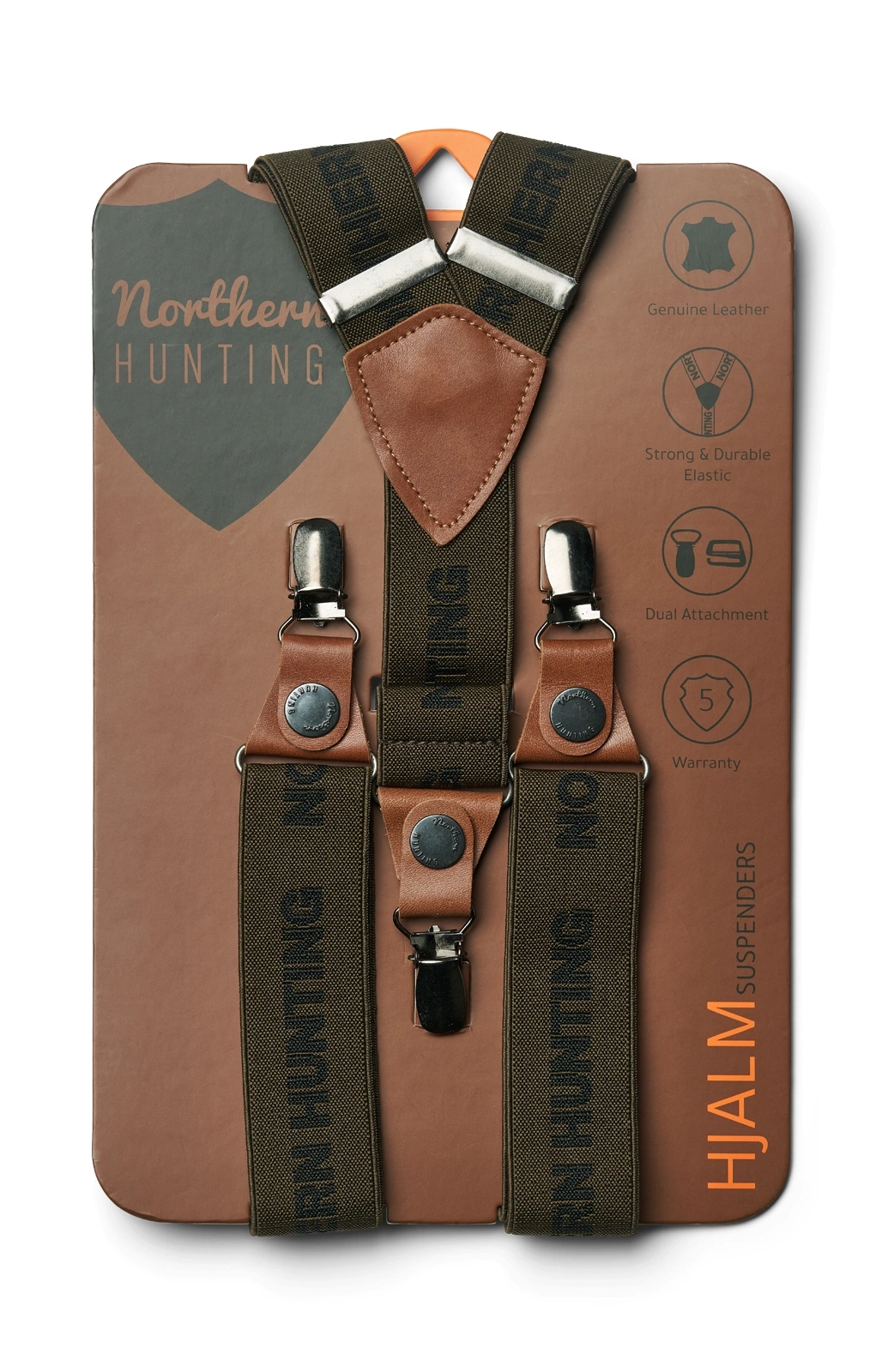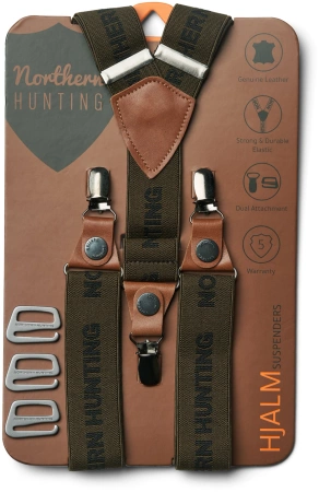 Szelki HJALM są niesamowicie elastyczne i wykonane z mniejszych skórzanych detali i metalowych klamer z dwoma różnymi opcjami montażu, zarówno z systemem Smart-Hook Northern Hunting, jak i ze zwykłą klamrą do stosowania na wszystkich spodniach myśliwskich i outdoorowych. Patrz zdjęcia.