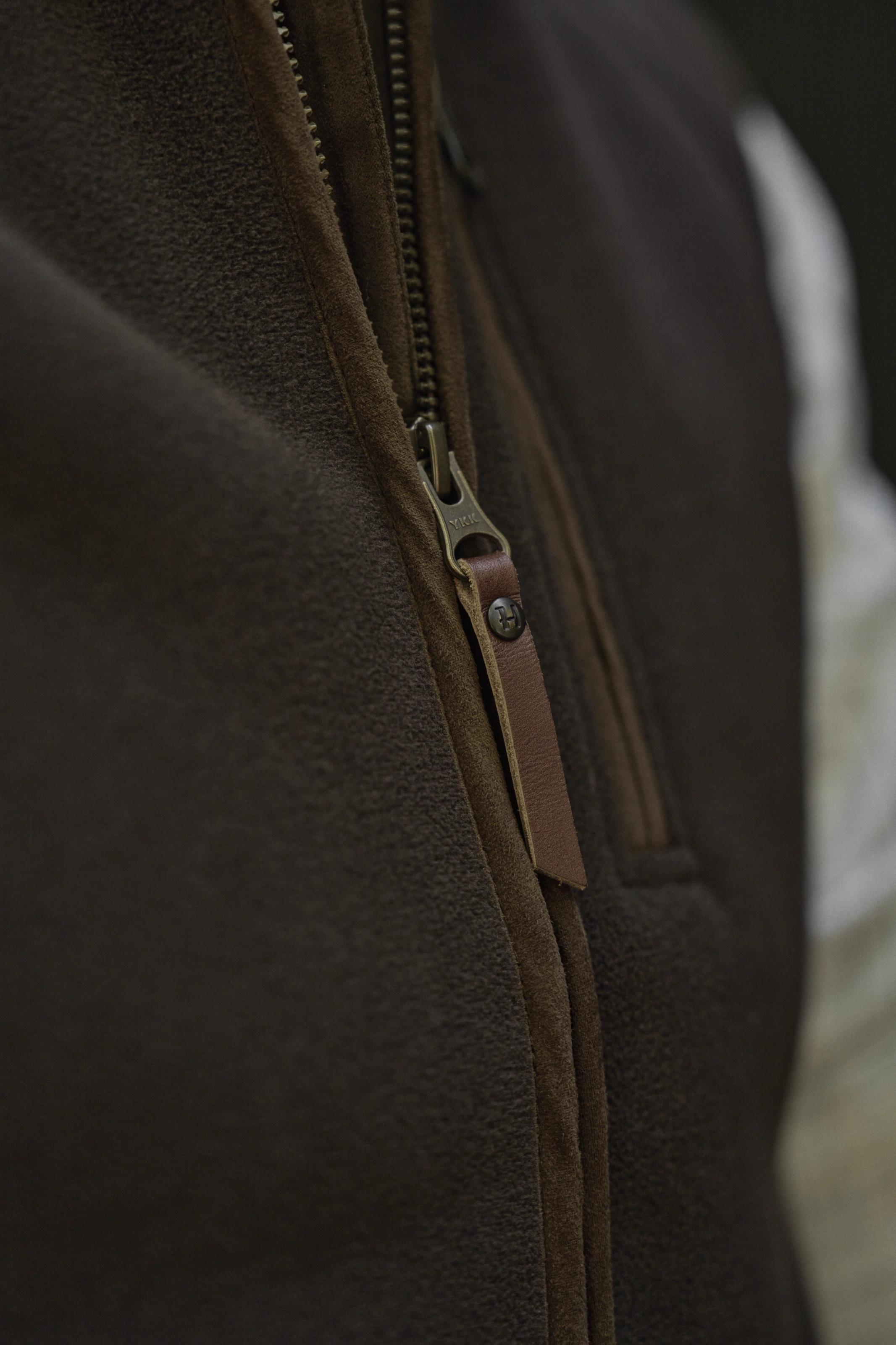 • skórzane krawędzie wzdłuż suwaka z przodu i krawędzi kołnierza,