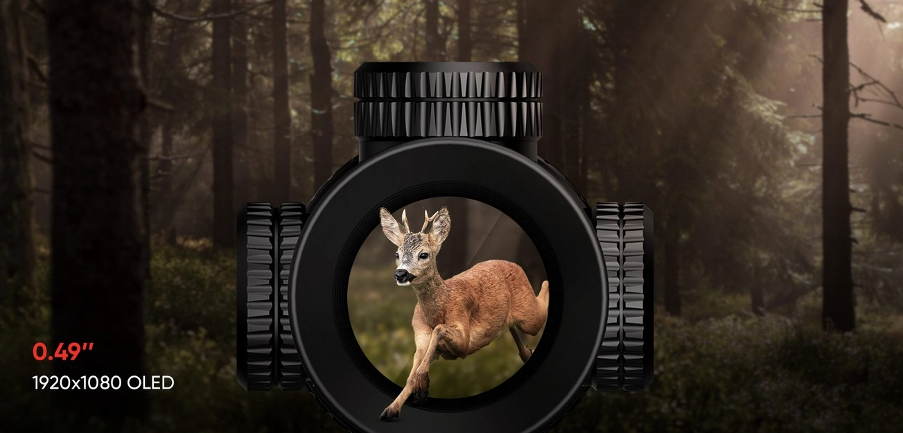 Sub-okrągły, duży wyświetlacz OLED o rozdzielczości 1920 x 1080 i przekątnej wynoszącej 0,49 cala należący do HIKMICRO ALPEX 4K otwiera nowe, komfortowe perspektywy obserwacyjne, dostarczając wyjątkowych wrażeń z polowania i obserwacji.