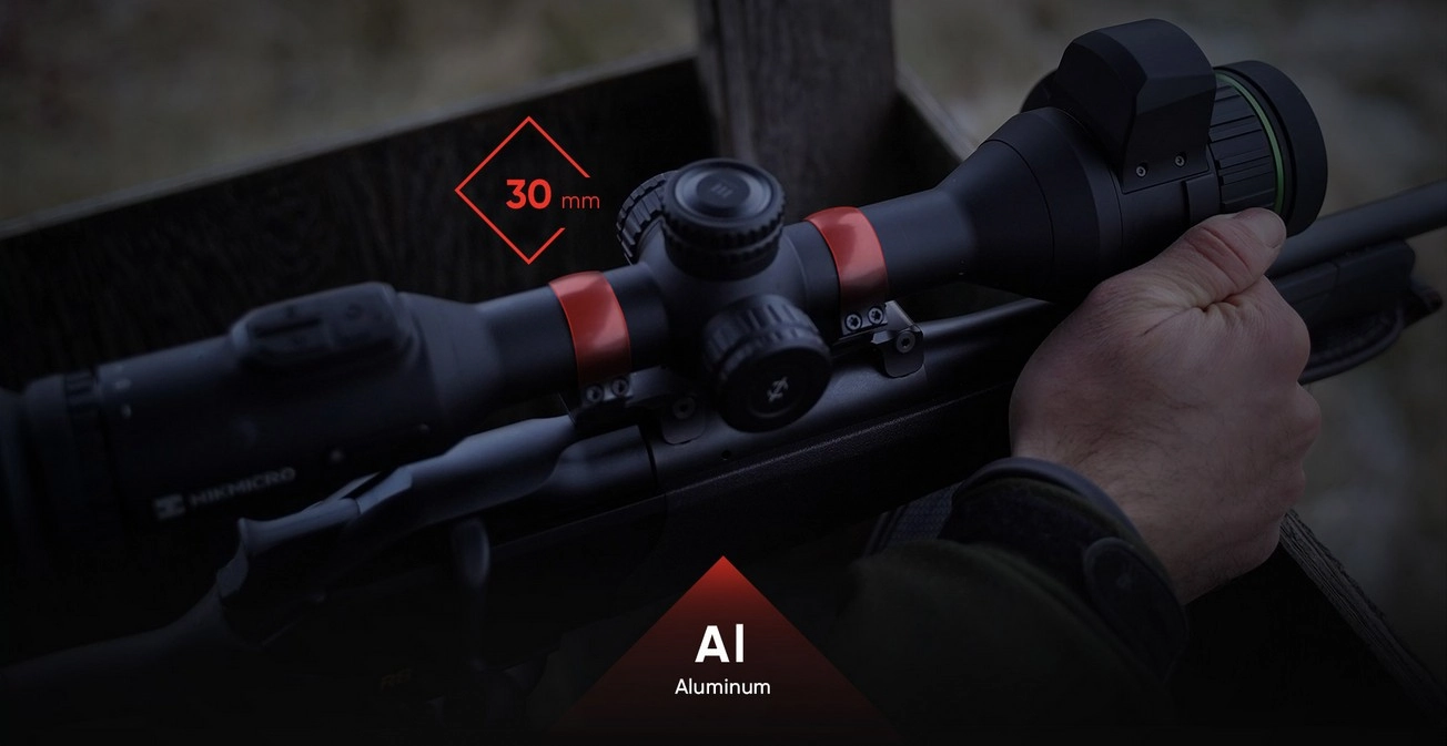 Tradycyjny wygląd i wrażenia z dotyku, konstrukcja o klasycznym stylu pasująca do standardowych pierścieni montażowych 30 mm. Wytrzymała obudowa wykonana ze stopu aluminium zapewnia większą trwałość dzięki czemu HIKMICRO ALPEX 4K jest w stanie sprostać surowym warunkom środowiskowym