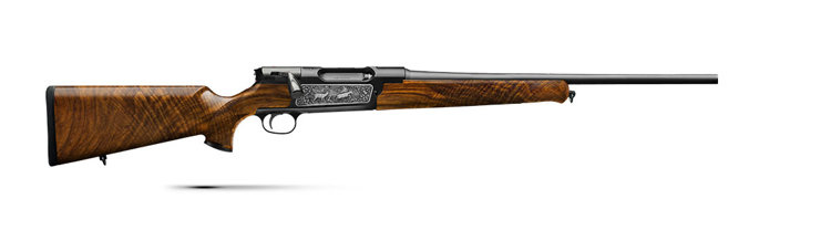 STRASSER RS 14 Luxus I oraz II jest standardowo wyposażony w osadę drewnianą klasy 3, niklowane płyty boczne z grawerunkiem myśliwskim: