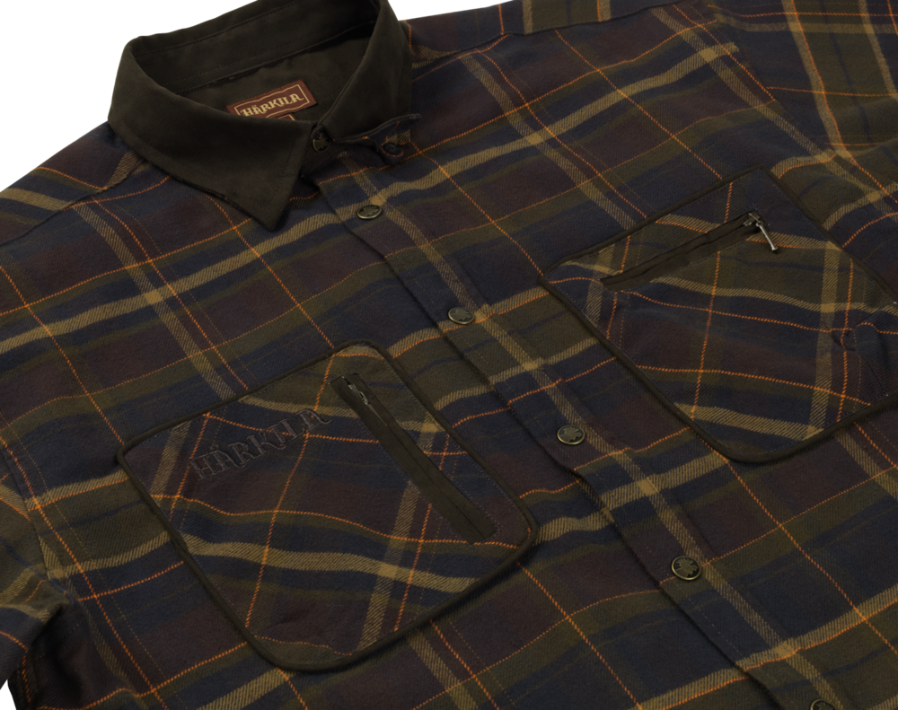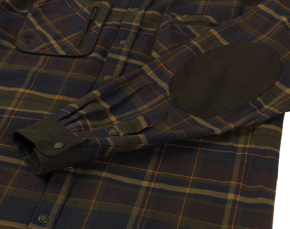 Koszula Pajala to flanelowa koszula w kratkę, zapinana na napy. Posiada wzmocnienia z mikro-zamszu i praktyczne kieszenie, na polowania i zajęcia na świeżym powietrzu.