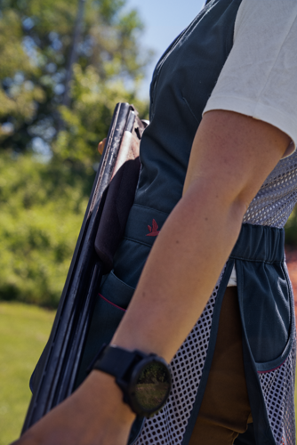 Kamizelka Skeet II to elegancki design, opracowany we współpracy z profesjonalnymi strzelcami. Duża część kamizelki jest wykonana z siatki, dzięki czemu jest wygodna w noszeniu, nawet w bardzo ciepłe dni. Dzięki elastycznej talii dopasowuje się do ciała i podąża za każdym ruchem. Ramiona są głęboko wycięte, aby zapewnić optymalną swobodę ruchów i umożliwić przygotowanie strzału bez przemieszczania się kamizelki. Z przodu znajdują się duże podwójne kieszenie na naboje, a na klatce piersiowej pasek na gogle do strzelania. Z tyłu znajduje się duża otwarta kieszeń "myśliwska" i poręczny pasek do zawieszenia nauszników. Wewnątrz znajdują się również kieszenie na wkładki żelowe, które chronią ramiona podczas powtarzania strzałów. Skeet II to praktyczna kamizelka strzelecka z wieloma starannie przemyślanymi detalami, która daje przewagę, niezależnie od tego, czy strzelasz do rzutków na profesjonalnym poziomie, trenujesz w strzelaniu symulowanym, czy po prostu odwiedzasz strzelnicę, aby szlifować swoje umiejętności.