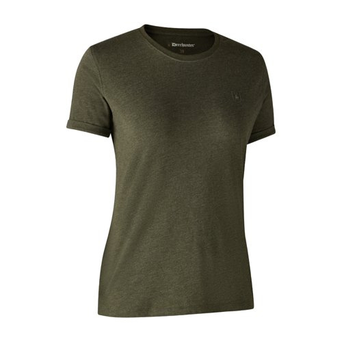 Lekka, nakrapiana koszulka z okrągłym dekoltem i emblematem Deerhunter pasuje do każdej outdoorowej garderoby. Jest miękki i delikatny dla skóry i ma wygodny krój. T-shirt damski z okrągłym dekoltem i lekko wywiniętymi mankietami doskonale sprawdzi się w połączeniu z dżinsami lub szortami do swobodnego stroju oraz w chłodniejsze dni pod ulubioną koszulę lub sweter Deerhunter.